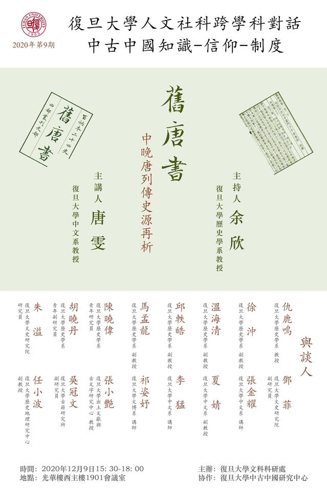 复旦大学人文社会科学“跨学科对话”2020年第9期——《旧唐书》中晚唐列传史源再析