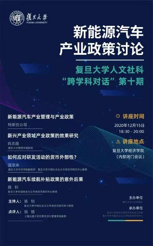 复旦大学人文社会科学“跨学科对话”2020年第10期——新能源汽车产业政策讨论