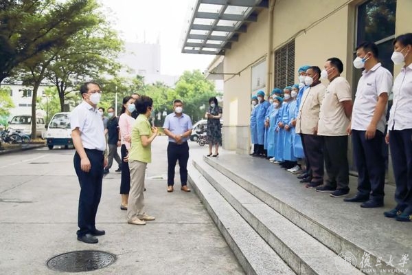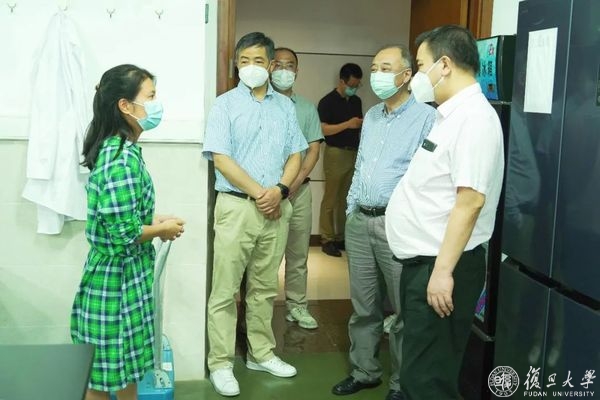 7月15日下午,校长金力、副校长张人禾前往江湾校区,看望慰问高温下坚守一线的师生员工。